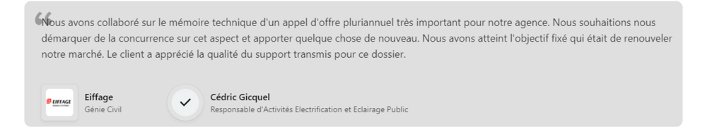Vous souhaitez être accompagné pour votre soutenance d’appel d’offre, pour construire une stratégie et un design de présentation à la hauteur de vos enjeux ? Prezman a déjà accompagné de nombreux clients (Eiffage, Eurovia, Hub Safe, Veolia…) sur ces sujets et nous serons ravis d’en parler avec vous, contactez-nous !